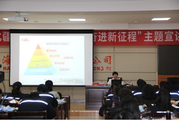 草長鶯飛,萬物生發(fā),為慶祝第113個“三八”國際婦女節(jié),2023年3月7日下午,烏海市熱力有限責任公司攜手三八婦女節(jié)開展“傳承好家風好家訓建設文明廉潔家庭”主題宣講教育活動,通過別樣的學習形式,唱響廉潔家風“好聲音”,教育引導女同志爭當“廉內助”,守好家庭“廉潔門”,并對“半邊天”們致以節(jié)日的祝福?;顒友埵形v師團副團長蔣桂芝擔任宣講人,熱力公司全體女職工100余人參加了活動。