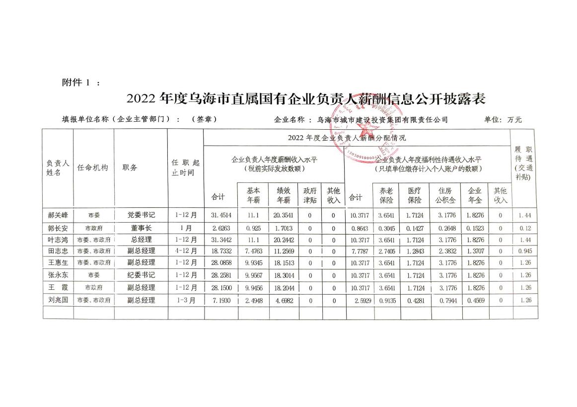 - 2025-12-262024年度烏海市直屬國有企業(yè)負責人薪酬信息公開披露表