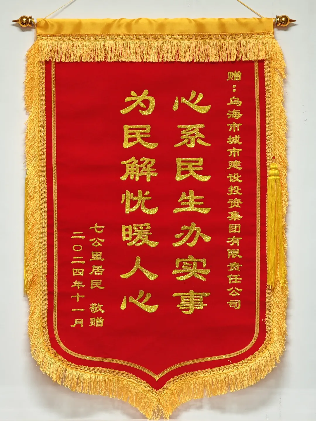 11月6日上午,烏海市城市建設(shè)投資集團有限責(zé)任公司收到海勃灣區(qū)三廠七公里處居民送來的錦旗,錦旗上的“心系民生辦實事 為民解憂暖人心”幾個大字熠熠生輝。