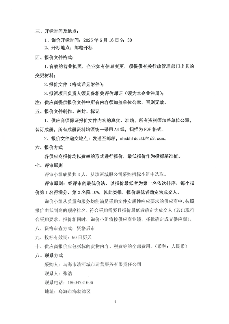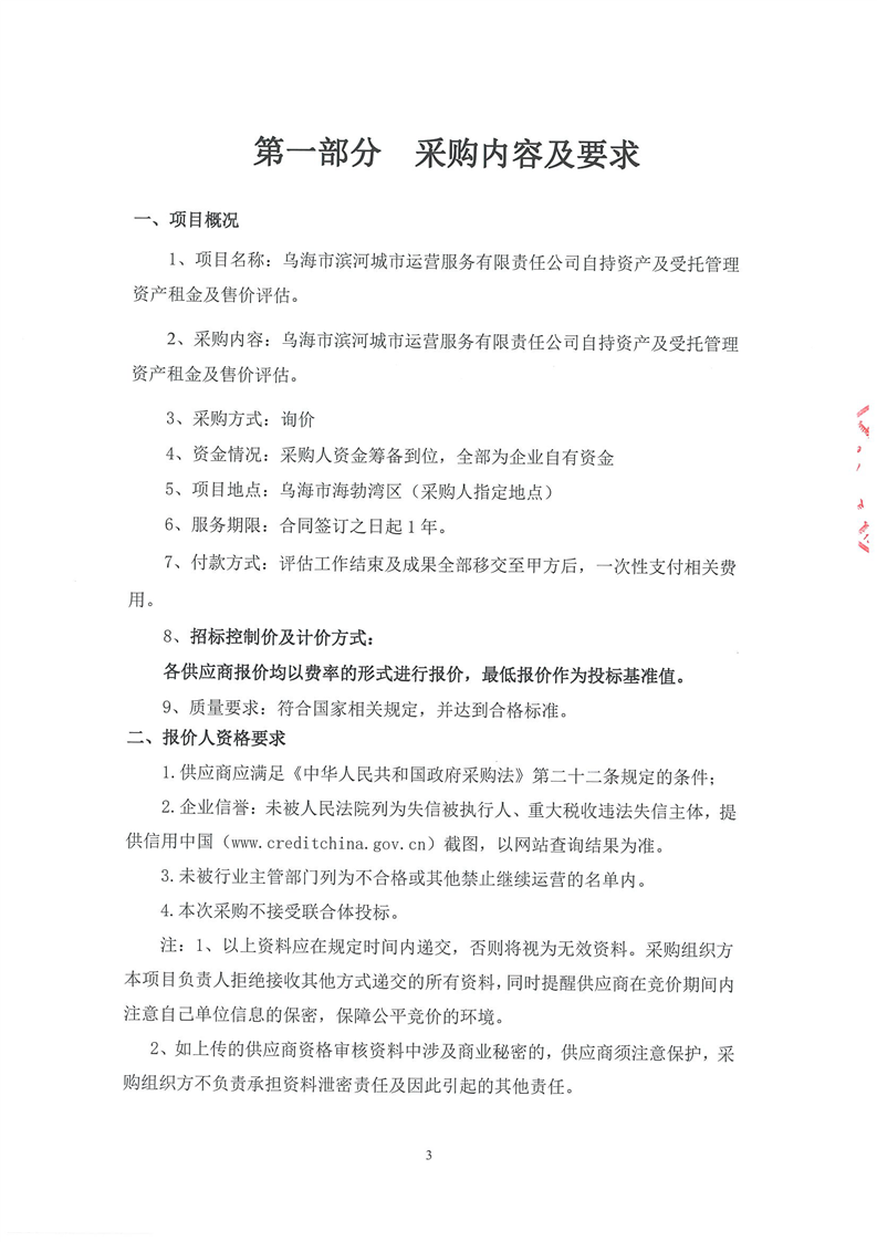烏海市濱河城市運(yùn)營(yíng)服務(wù)有限責(zé)任公司自持資產(chǎn)及受托管理資產(chǎn)租金及售價(jià)評(píng)估詢價(jià)文件