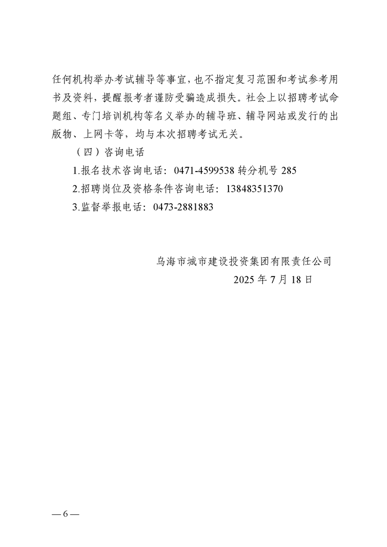 - 2025-10-14烏海市城市建設投資集團有限責任公司關于終止與內蒙古華格項目管理咨詢有限責任公司業(yè)務合作的通知