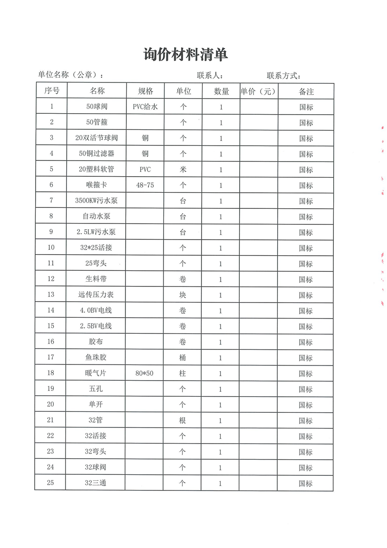 2025年維修項(xiàng)目材料供應(yīng)商采購【第二次重新采購】詢價(jià)文件