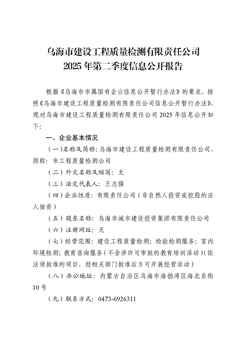 - 2025-10-28烏海市建設(shè)工程質(zhì)量檢測有限責(zé)任公司2025年三季度信息公開