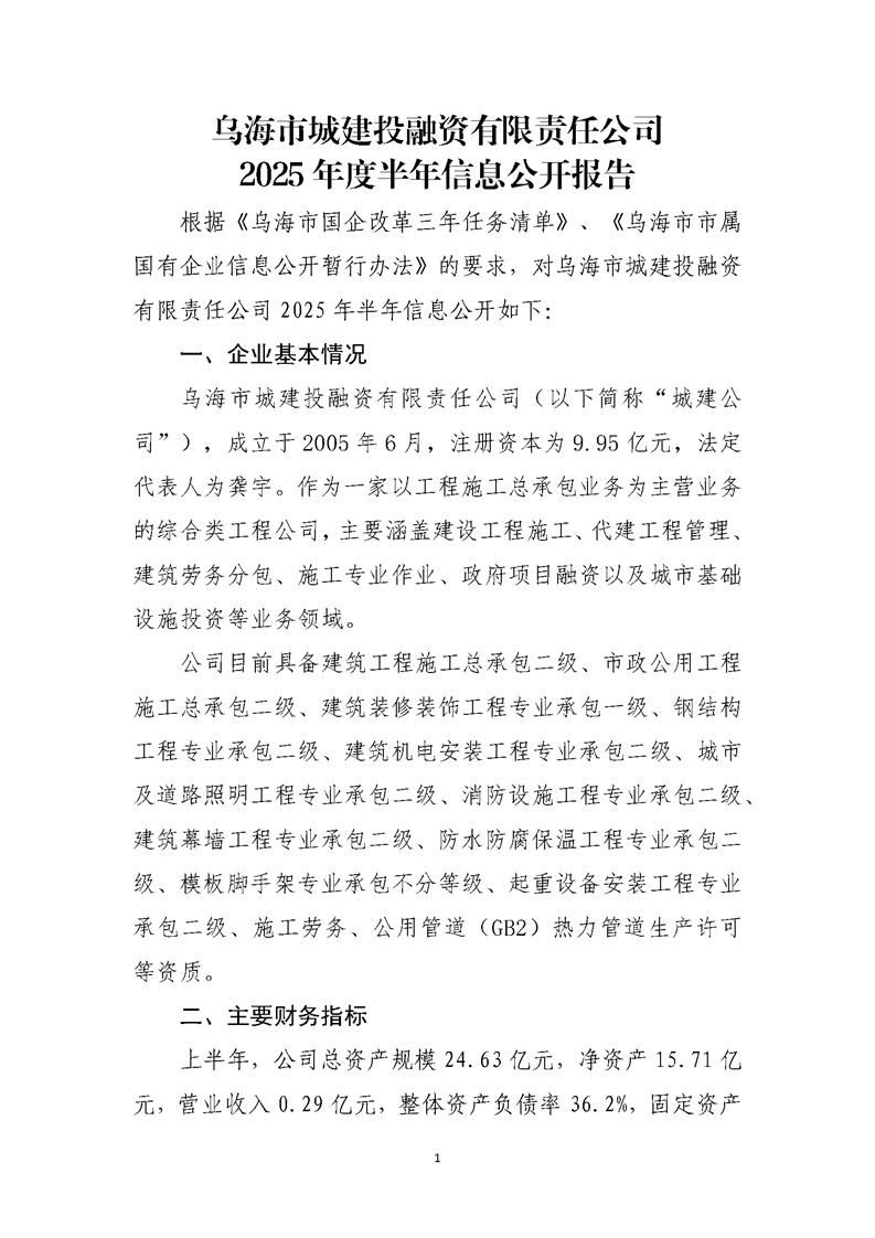 - 2025-04-22烏海市城建投融資有限責(zé)任公司2025年度第一季度信息公開