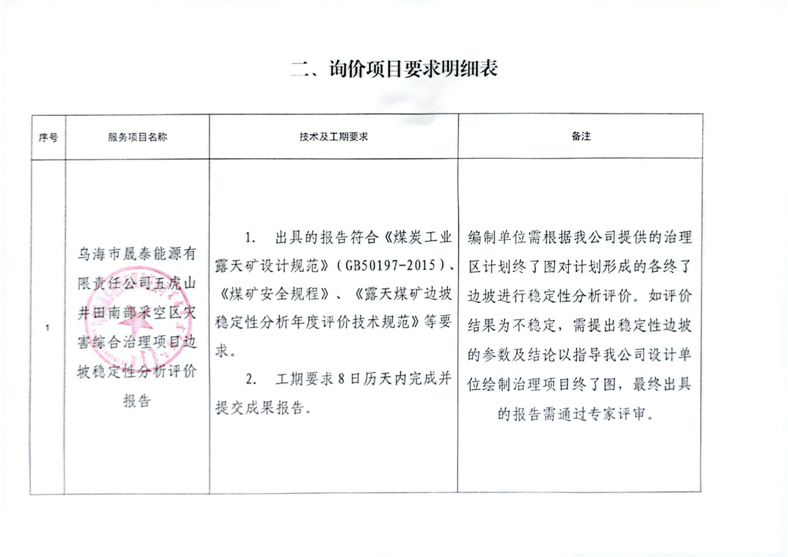 - 2025-12-16烏海市晟泰能源有限責(zé)任公司五虎山井田南部采空區(qū)災(zāi)害綜合治理項(xiàng)目生態(tài)環(huán)境損害司法鑒定評(píng)估項(xiàng)目詢(xún)價(jià)公告