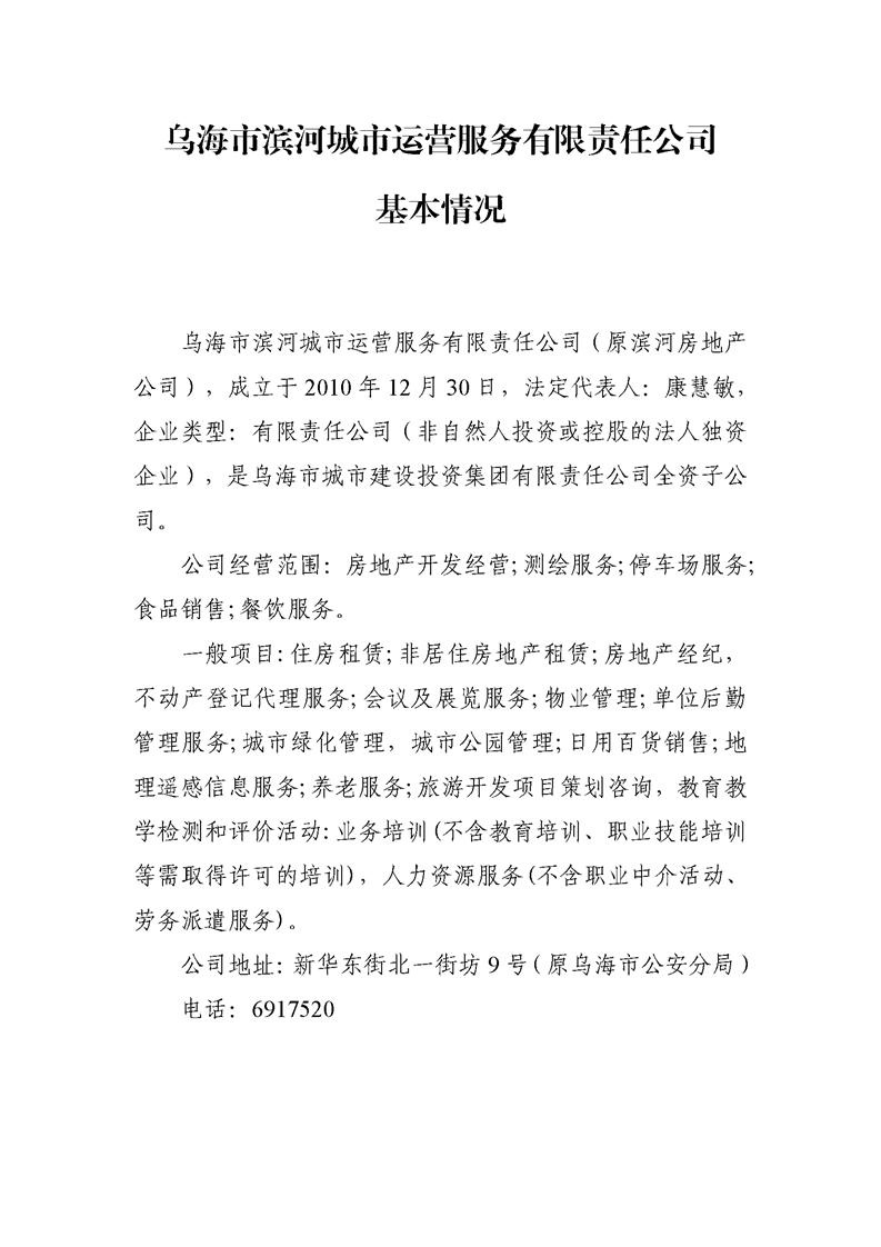 - 2024-07-09烏海市濱河房地產(chǎn)開發(fā)有限責任公司2024年第二季度信息公開