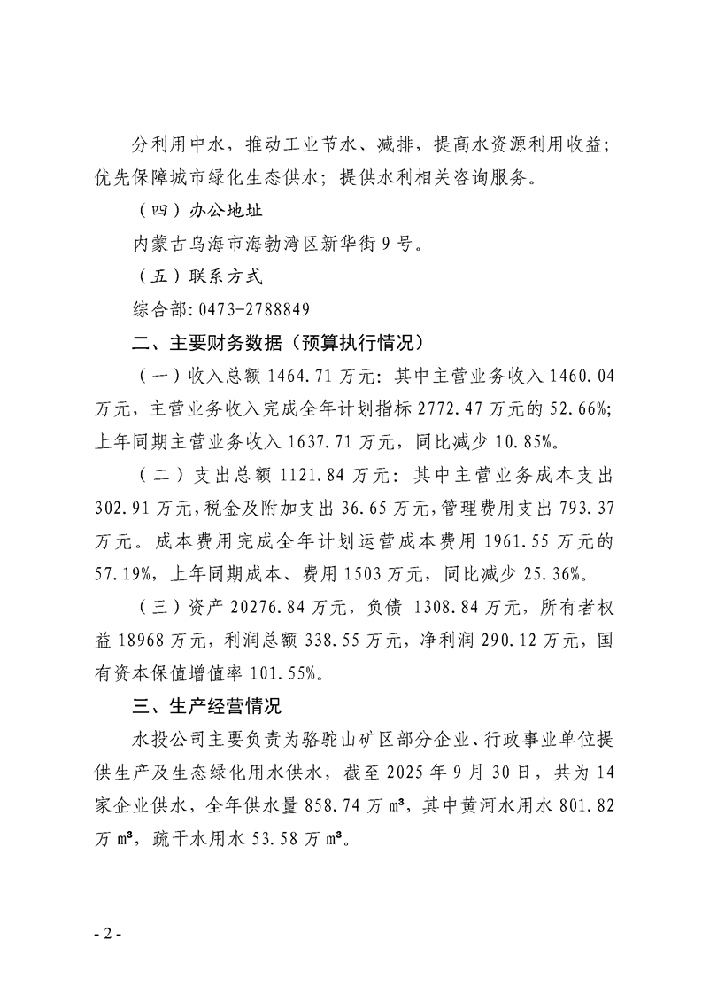 - 2025-07-28烏海市水務(wù)投資有限責(zé)任公司2025年第二季度信息公開