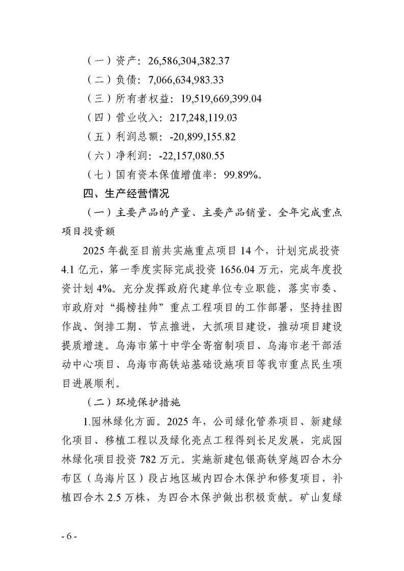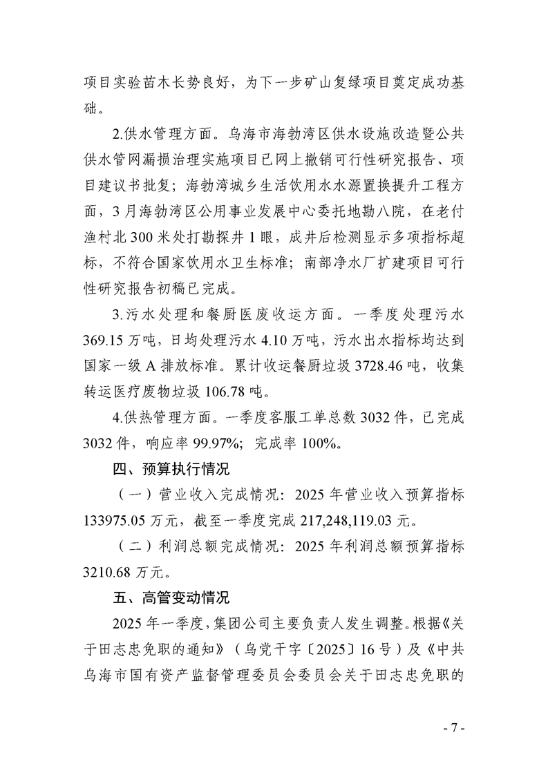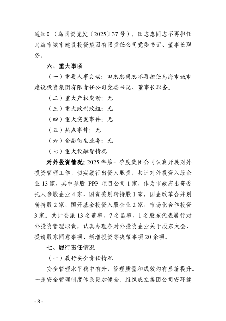 - 2025-07-25烏海市城市建設(shè)投資集團(tuán)有限責(zé)任公司 2025年度第二季度信息公開報告