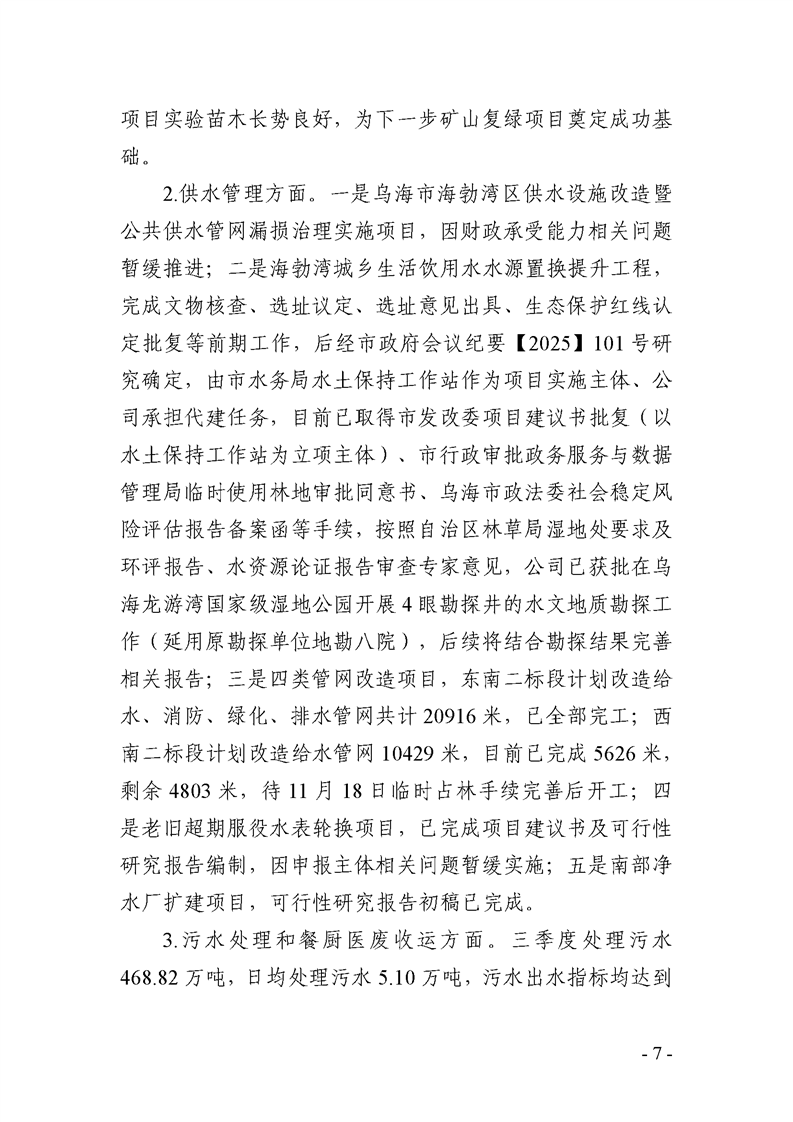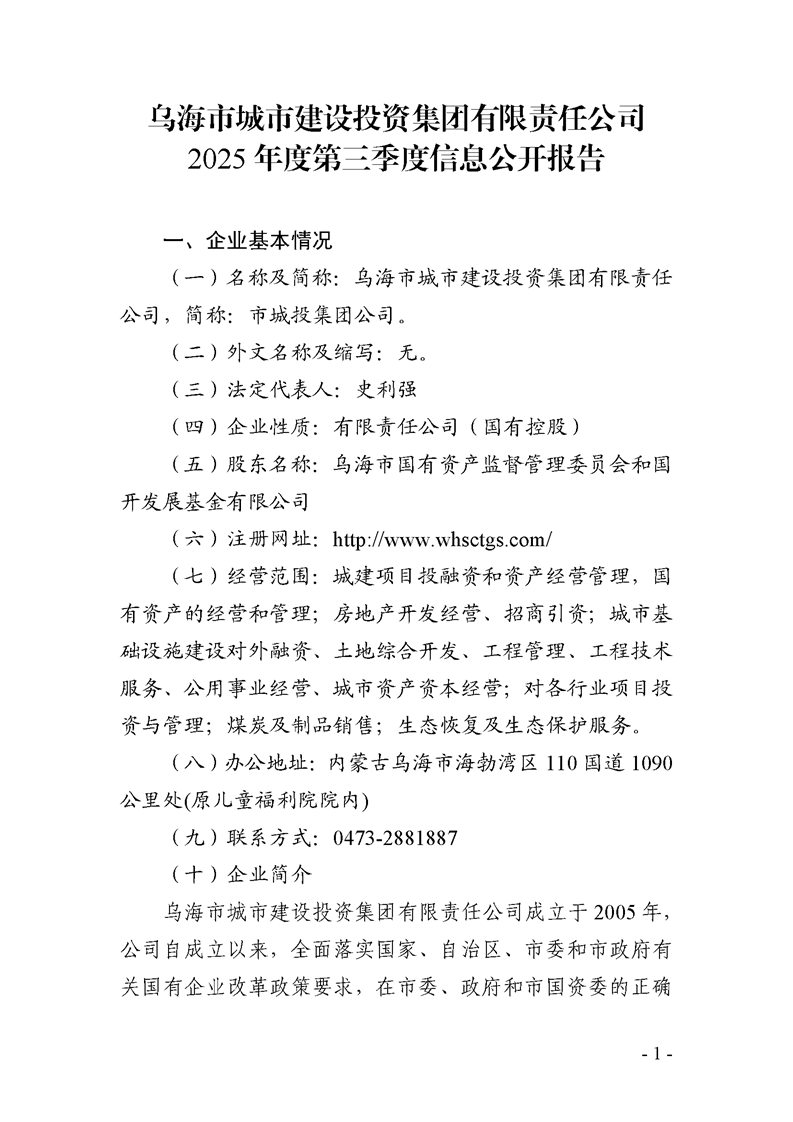 烏海市城市建設(shè)投資集團(tuán)有限責(zé)任公司 2025年度第三季度信息公開(kāi)報(bào)告