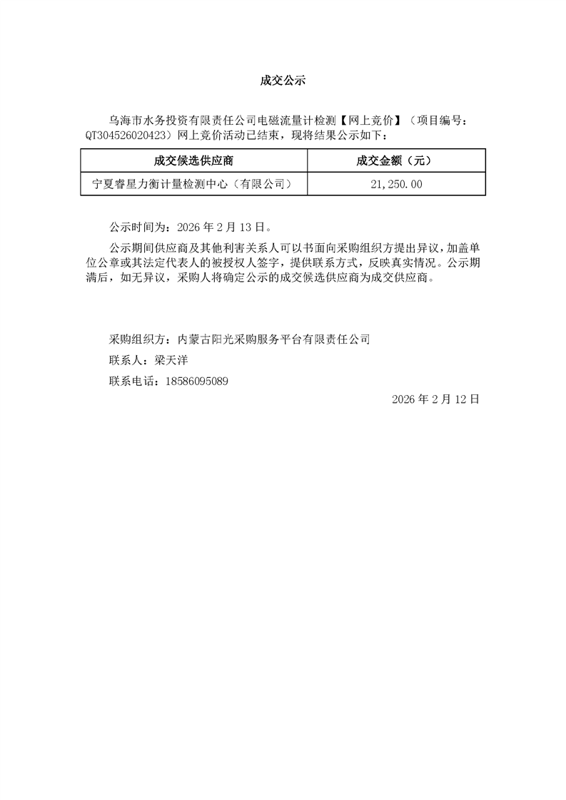 - 2026-02-13烏海市熱力有限責任公司2025年度所有涉及稅費審計、工會收支審計采購項目結(jié)果公示